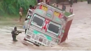 17 people have been rescued from a truck which is stuck in the middle of Banas river near Tonk in Rajasthan.